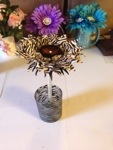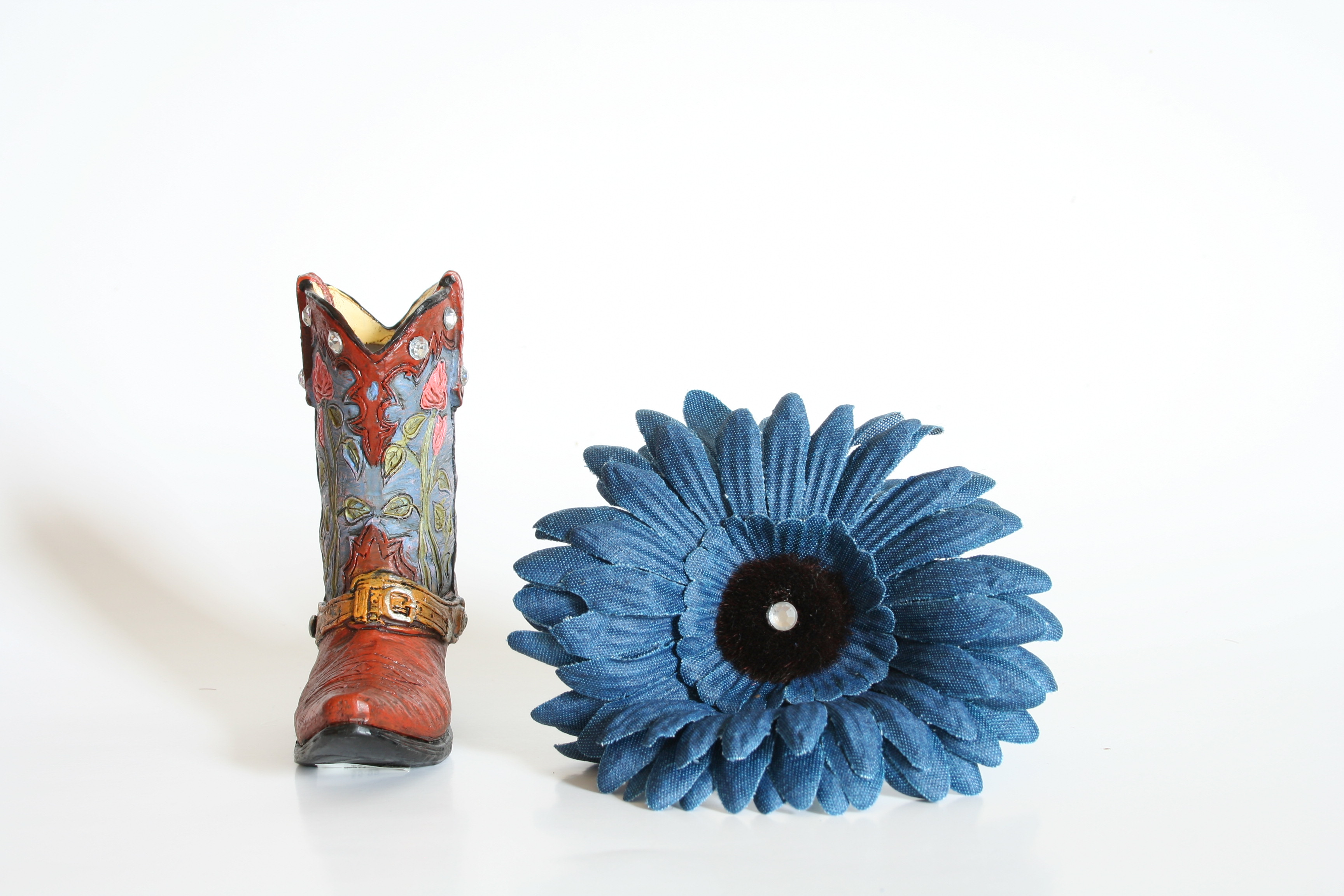 My sister saw these little boots at the store and thought they would be cute pen holders. I thought about it and then realized that I had some denim flowers and voila! a cowgirl flower pen! This is really very cute in person. Too cute. I want one for myself and have this feeling that I need to make at least 10 for the craft show I’m doing in September. I really like this one 🙂